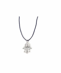 COLLIER «MAIN DE FATMA» CORDON NOIR + PENDANTIF EN MÉTAL ARGENTÉ