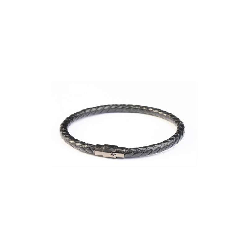 Bracelet jonc en cuir noir avec fermoir aimanté.