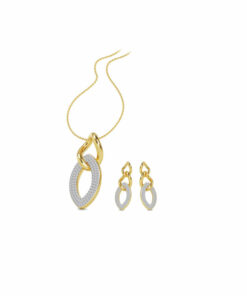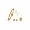 Ce set de bijoux couleur champagne est composé d’un bracelet jonc à fermoir, d’une paire de splendides boucles d’oreilles et d’un collier orné d’un pendentif éblouissant, serti de zirconiums cubiques scintillants.