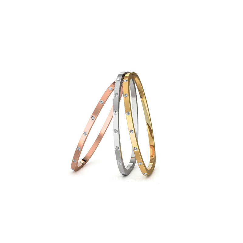 Lot de 3 bracelets tricolores, en plaqué or 18 carats, or rose et argent, pavés de cristaux de zircone cubique étincelants.